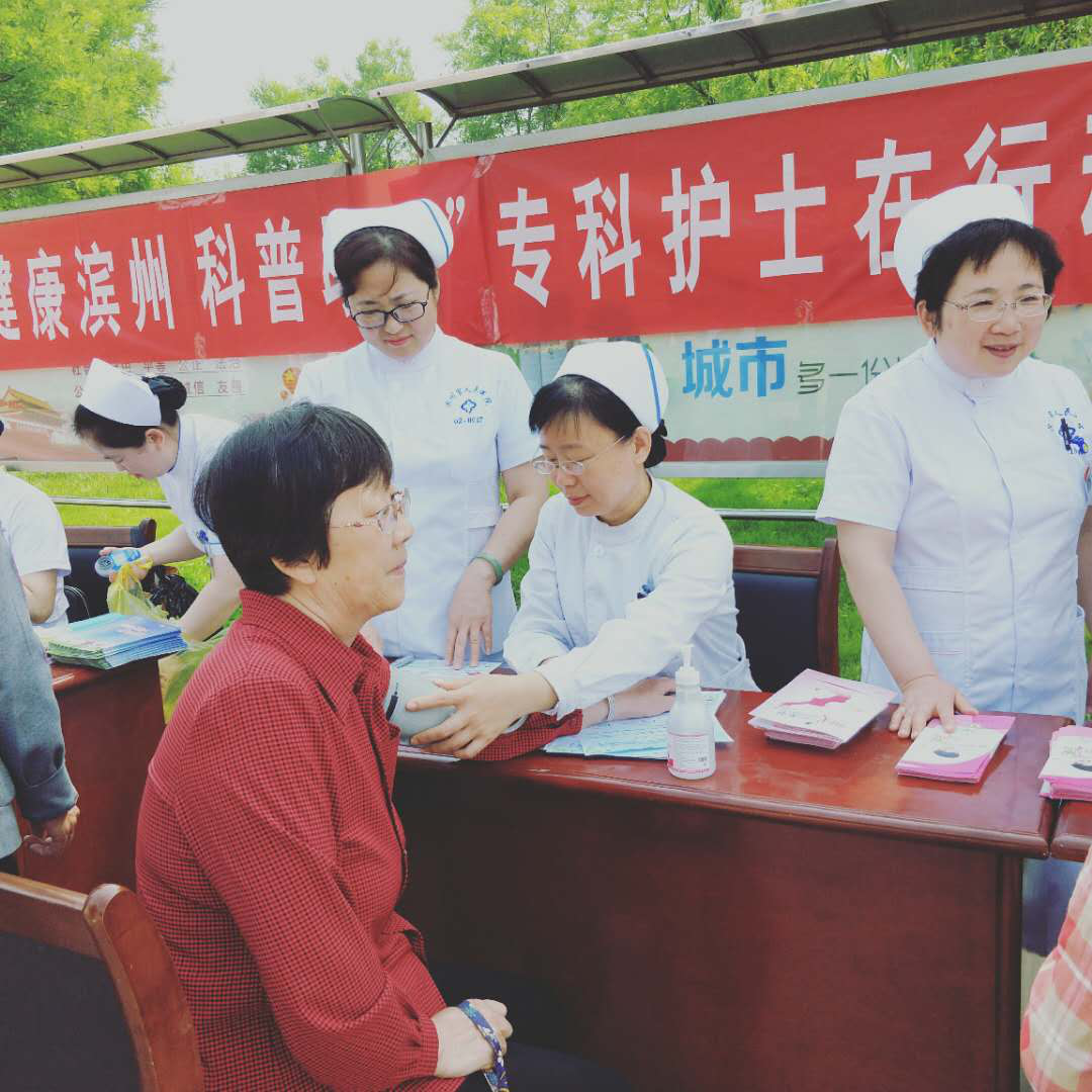 5月12日上午,我院護理部以“健康濱州 護理助力”為主題開展志愿義診和科普宣傳活動。此次活動分為三行人同時開展,一行人在濱州市中海公園廣場為現場群眾提供健康咨詢和免費體檢,普及疾病預防,提高市民的健康素養;一行人對杏林健康管理中心入住的氣管切開昏迷病人進行護理指導尤其是氣道管理予以指導;另一行人走進濱州市愛心護理院進行母親節慰問。