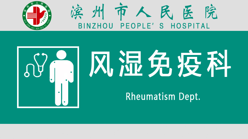 濱州市人民醫院于2005年在濱州市率先開展風濕病的診治工作,同年成立濱州市醫學會風濕病專業委員會。2007年3月成立風濕免疫科,共有醫師7名(其中碩士研究生導師1名,碩士研究生5名),護士12人?,F有病床35張,常年開設??萍皩<议T診。