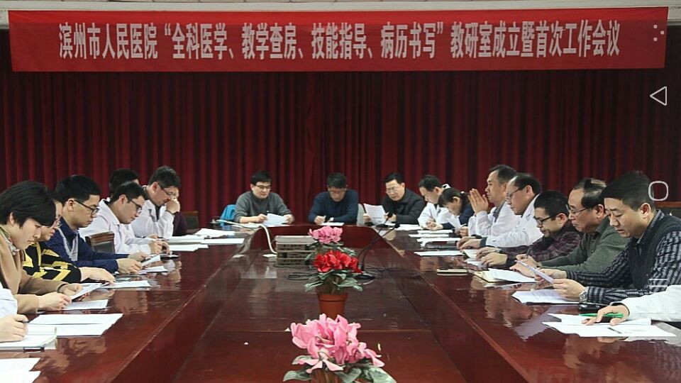 會(huì)議開始,金世祿副院長首先表示對參會(huì)全員的熱烈歡迎,我院作為國家級住院醫(yī)師規(guī)范化培訓(xùn)基地,積極響應(yīng)國家、省、市衛(wèi)計(jì)委號(hào)召,認(rèn)真貫徹落實(shí)住培、教學(xué)及培訓(xùn)工作,為進(jìn)一步深化公立醫(yī)院改革,完善本院基地建設(shè)、提高培訓(xùn)質(zhì)量及促進(jìn)學(xué)員全面發(fā)展,現(xiàn)成立“全科醫(yī)學(xué)、教學(xué)查房、病歷書寫、技能指導(dǎo)”四個(gè)教研室。科教科科長王慶元就四大教研室成立的相關(guān)事宜做了詳細(xì)解讀,并對四大教研室成立后的工作開展給予建議:四大教研室成立后應(yīng)盡快制定2017年度工作計(jì)劃,要求具體、可行、落地。崔立敏分別對四大教研室的成員組織結(jié)構(gòu)及相關(guān)職責(zé)進(jìn)行宣讀,職責(zé)中對各教研室負(fù)責(zé)人及秘書、成員以后工作開展做出相關(guān)要求,并就各教研室通訊錄、今后工作開展的相關(guān)要求、相關(guān)教材發(fā)放等問題給予解決。與會(huì)成員薛春才、楊勝、索曉霞、王新安積極響應(yīng)并發(fā)表意見,濱州市疾控中心程自科主任、市東社區(qū)衛(wèi)生服務(wù)中心劉素峰主任、市中社區(qū)衛(wèi)生服務(wù)中心信澤濤副院長分別表達(dá)了對我院組織本次會(huì)議的認(rèn)可,并表示積極配合醫(yī)院工作,促進(jìn)醫(yī)院全科教學(xué)工作的順利進(jìn)行等。